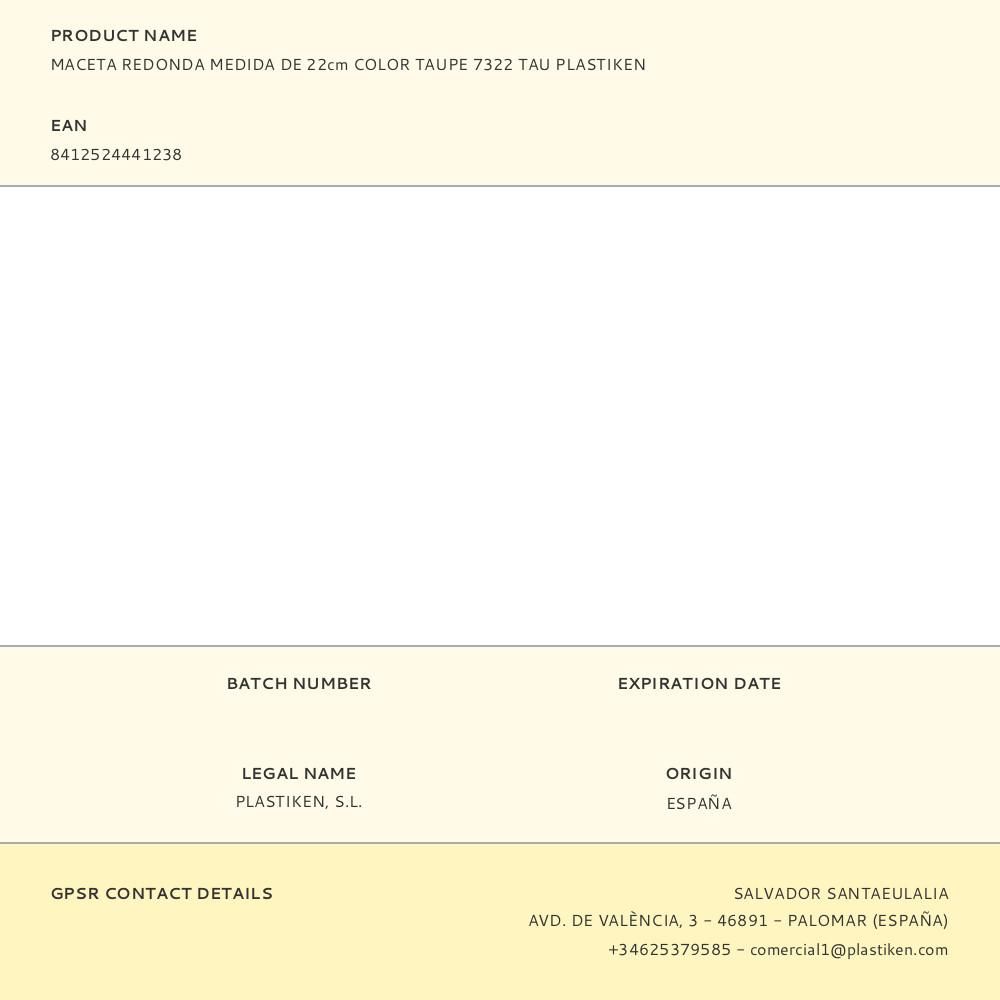 MACETA REDONDA MEDIDA DE 22cm COLOR TAUPE 7322 TAU PLASTIKEN