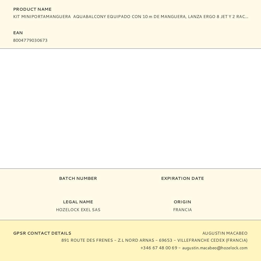 KIT MINIPORTAMANGUERA AQUABALCONY EQUIPADO CON 10 m DE MANGUERA, LANZA ERGO 8 JET Y 2 RACORES. COLOR AZUL
