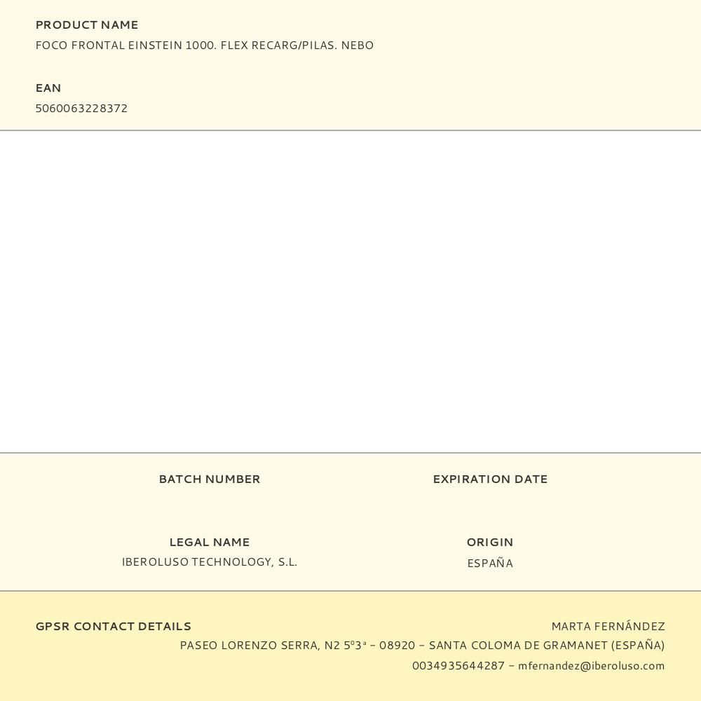 FOCO FRONTAL EINSTEIN 1000. FLEX RECARG/PILAS. NEBO