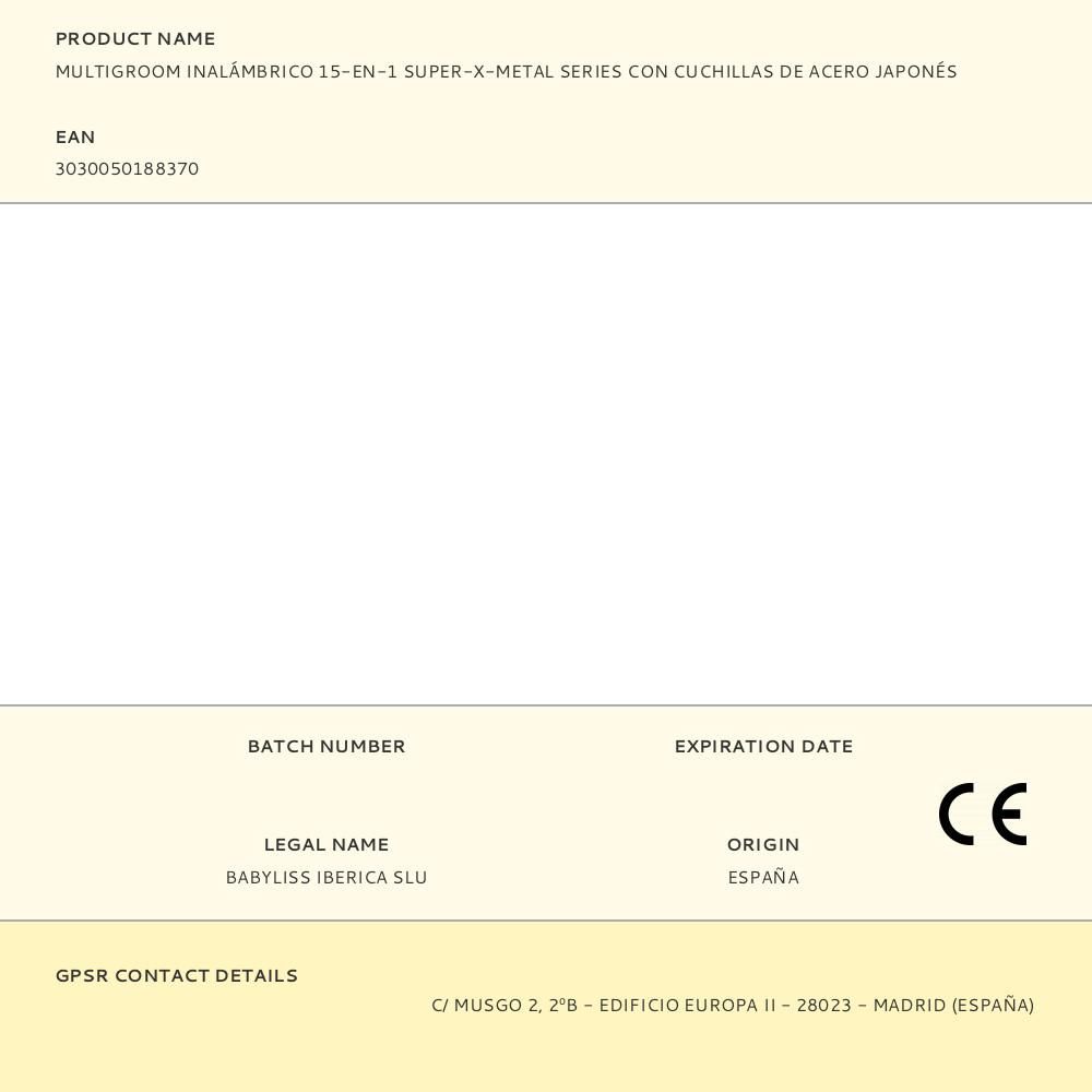MULTIGROOM INALÁMBRICO 15-EN-1 SUPER-X-METAL SERIES CON CUCHILLAS DE ACERO JAPONÉS