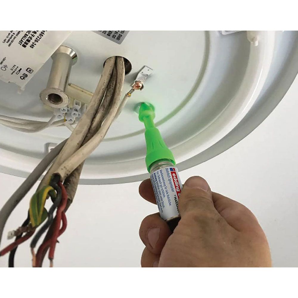 APLICABLE SOBRE MUCHAS SUPERFICIES, COMO LADRILLO, METAL, MADERA, PORCELANA Y CERÁMICA. EL MARCADOR DE AGUJEROS ES IDEAL PARA AGUJEROS DE PERFORACIÓN CON UNA PROFUNDIDAD DE MÁS DE 45 mm. BOQUILLA ESPECIAL MUY PRECISA Y PROFUNDA. AGUJERO DE Ø3 A 13 mm . TOTAL DE 250 PULVERIZACIONES. FUNCIONA A TRAVÉS DE UN MECANISMO DE BOMBEO PATENTADO QUE ROCÍA LA TIZA VERDE PARA FACILITAR LA MARCACIÓN. EL CIERRE DE SEGURIDAD. SIN TAPA PARA USAR CON UNA MANO SI ES NECESARIO. FÁCIL ELIMINACIÓN.