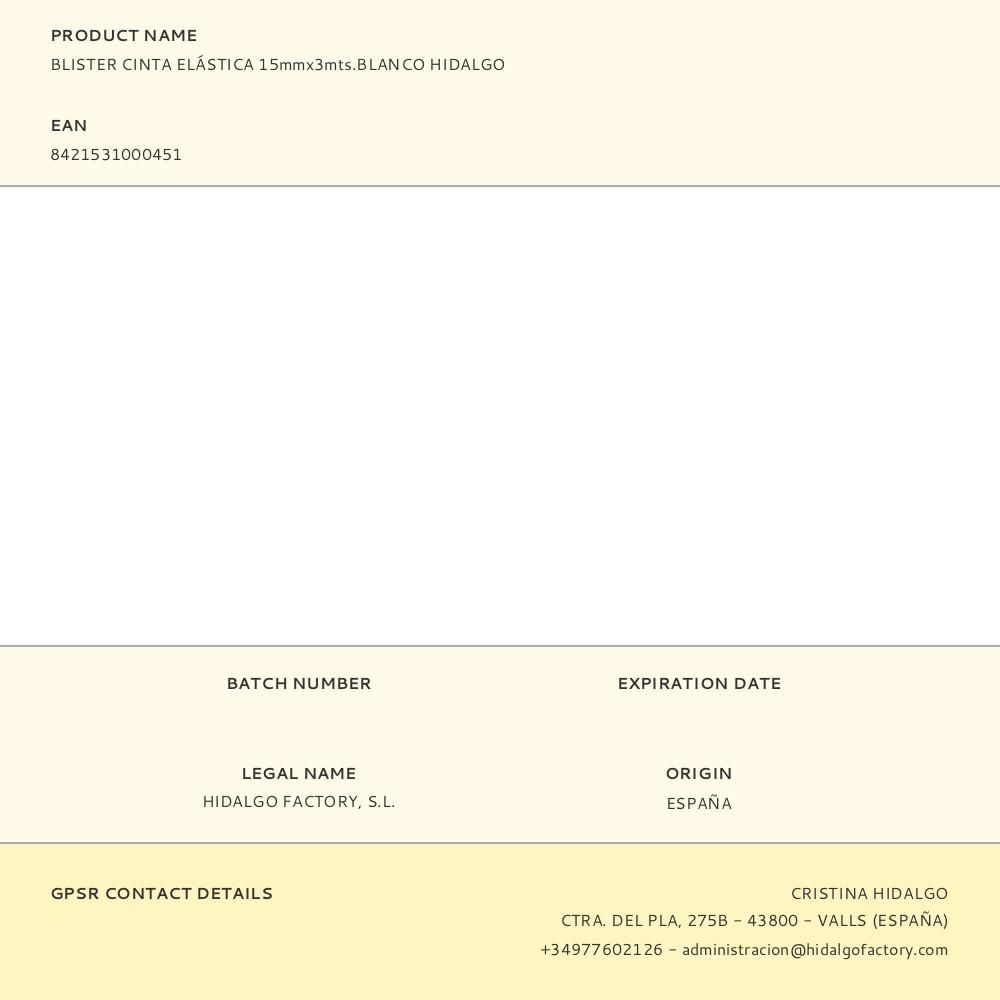 BLISTER CINTA ELÁSTICA 15mmx3mts.BLANCO HIDALGO