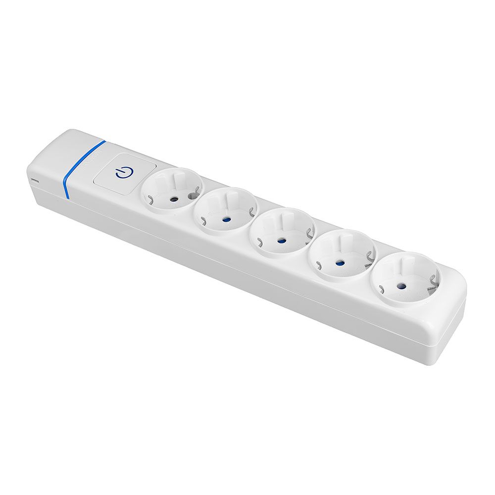 BASE MÚLTIPLE DE 5 TOMAS 2P+T, 16 A 250 V CON INTERRUPTOR LUMINOSO.