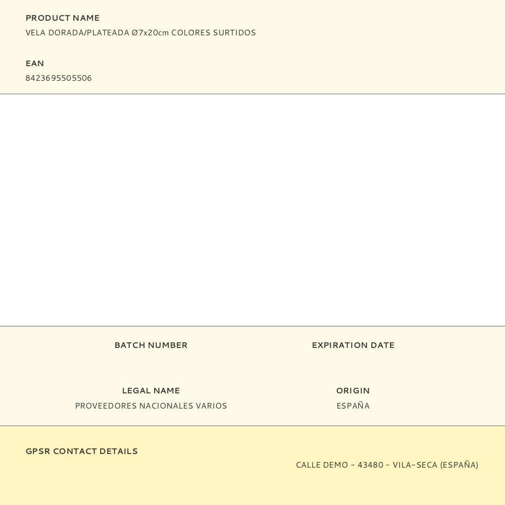 VELA DORADA/PLATEADA Ø7x20cm COLORES SURTIDOS