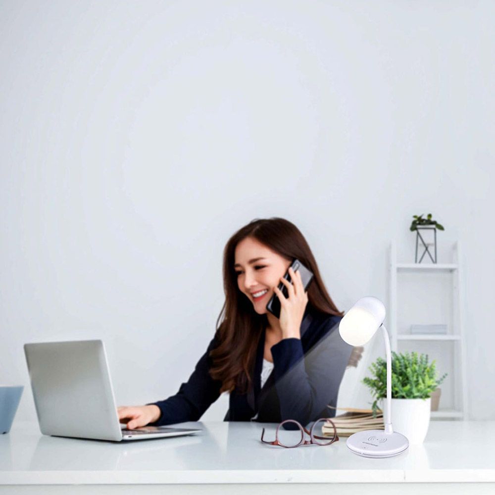 LÁMPARA DE ESCRITORIO LED 3-EN-1 GRUNDIG. LAMPARA + ALTAVOZ + CARGADOR INALÁMBRICO.