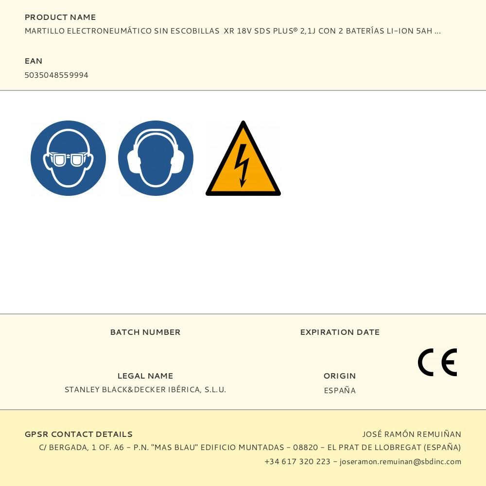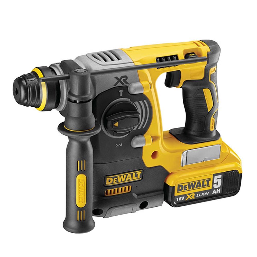 MARTILLO ELECTRONEUMÁTICO SIN ESCOBILLAS XR SDS-PLUS 18V 3 MODOS. IDEAL PARA PERFORACIONES DE ANCLAJES EN HORMIGÓN Y LADRILLO DESDE 4mm HASTA 24mm. PARADA DE ROTACIÓN PARA LIGERAS APLICACIONES DE CINCELADO EN YESO Y AZULEJOS - Y PARADA DE IMPACTO PARA TALADRAR MADERA, CERÁMICA O METAL. LA MENOR VIBRACIÓN DEL MERCADO: 6.6M/S² REDUCE LA FATIGA DEL USUARIO Y MAXIMIZA EL TIEMPO DE PRODUCTIVIDAD. MOTOR CON TECNOLOGÍA SIN ESCOBILLAS PARA UNA EXCELENTE EFICIENCIA. EMBRAGUE ELECTRÓNICO PARA UNA CONSISTENCIA EN EL NIVEL DE IMPACTOS Y PARA UNA MAYOR DURABILIDAD DE LA HERRAMIENTA. LA BATERÍA 18V LI-ION 5.0Ah OFRECE MAYOR RENDIMIENTO, MAYOR DURABILIDAD Y UNA MÁXIMA AUTONOMÍA. LUZ LED BLANCA BRILLANTE CON LA CARACTERÍSTICA DEL RETARDO PARA MEJORAR LA VISIBILIDAD Y LA FUNCIONALIDAD. INCLUYE: 2 BATERÍ...