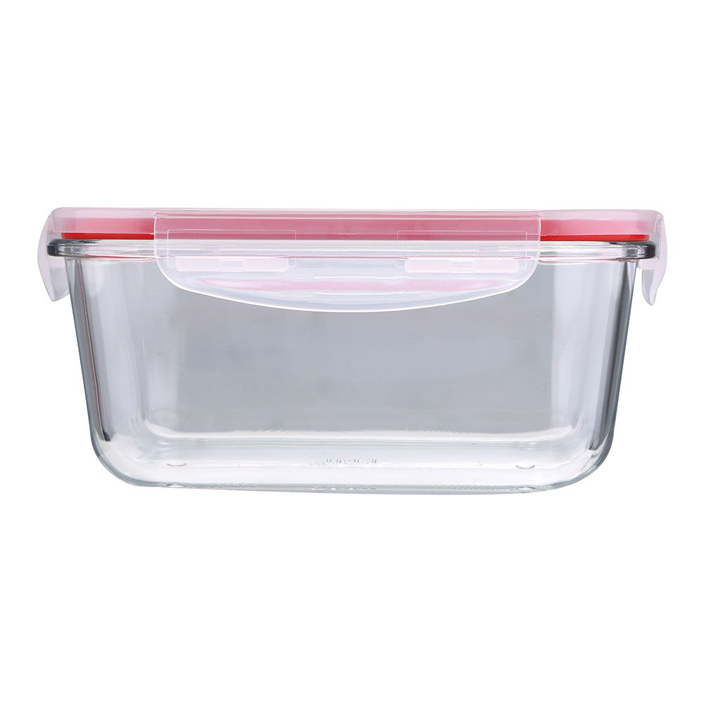 FIAMBRERA HERMÉTICA CRISTAL TOLEDO 850 ml. FABRICADO EN VIDRIO DE BOROSILICATO. TAPA DE PLÁSTICO PP CON LOS BORDES EN ROJO
