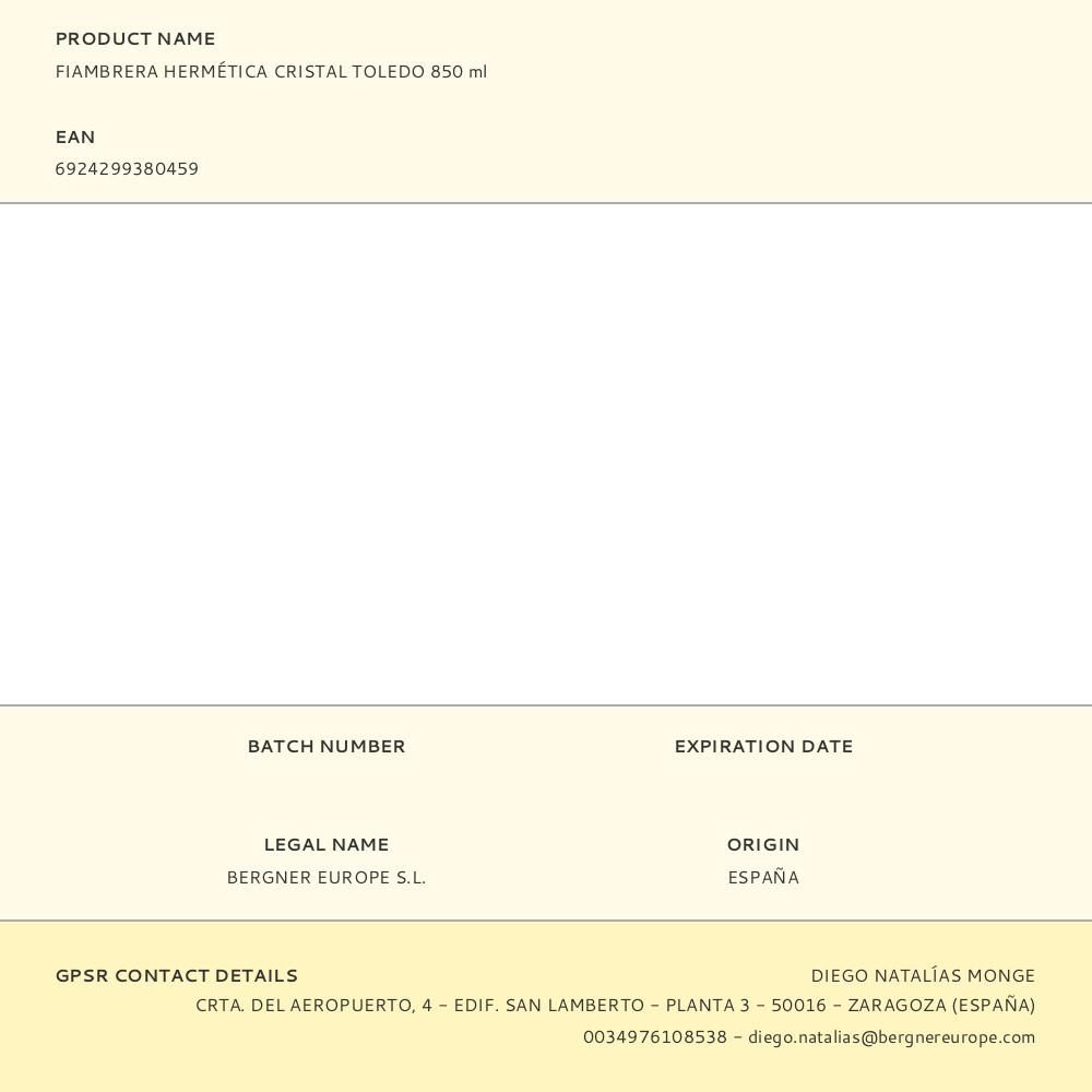 FIAMBRERA HERMÉTICA CRISTAL TOLEDO 850 ml
