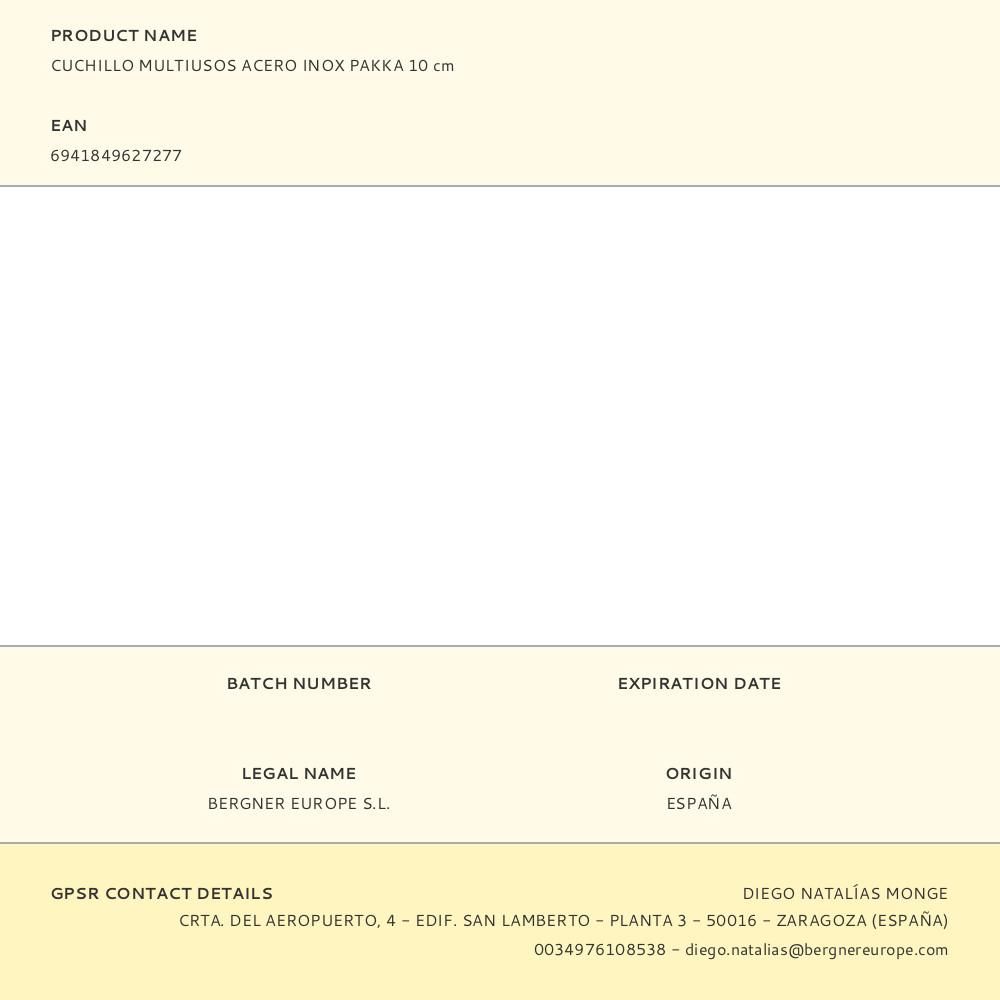 CUCHILLO MULTIUSOS PAKKA DE ACERO INOXIDABLE 10 cm