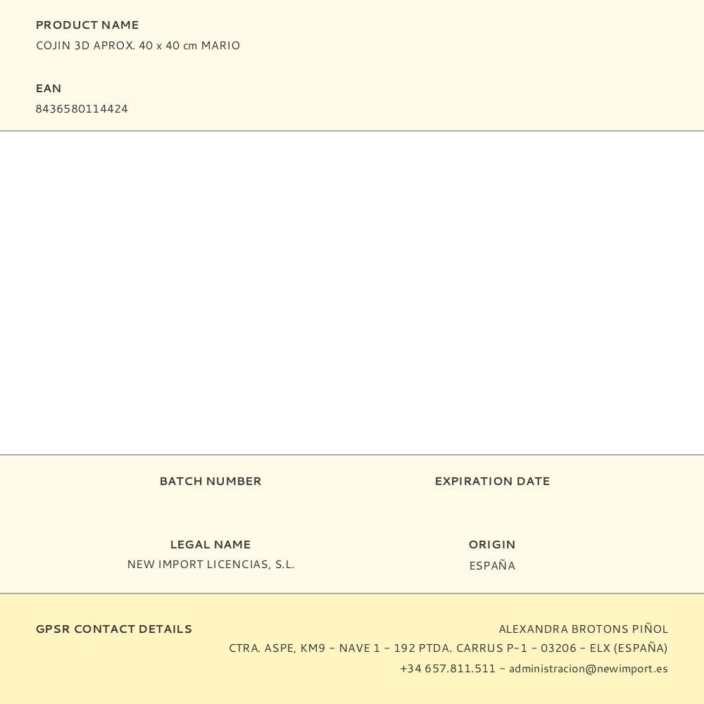 COJIN 3D APROX. 40 x 40 cm MARIO