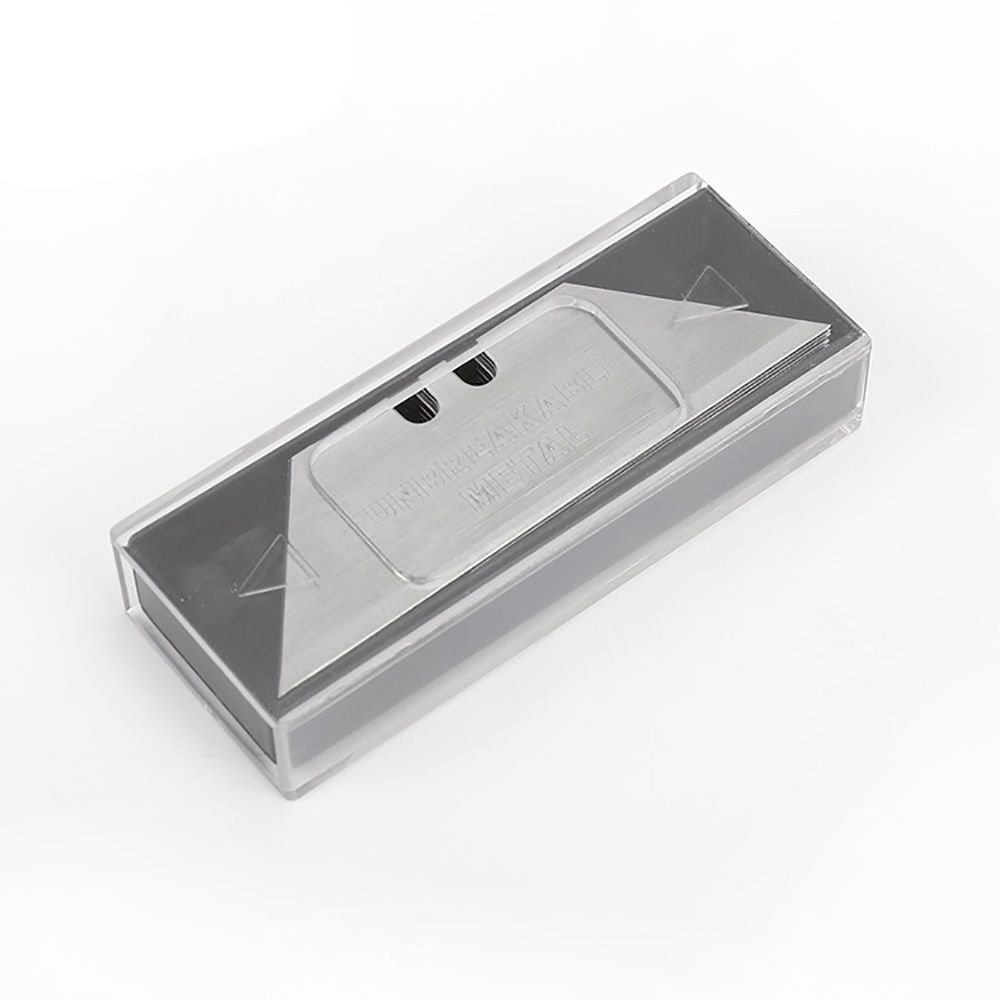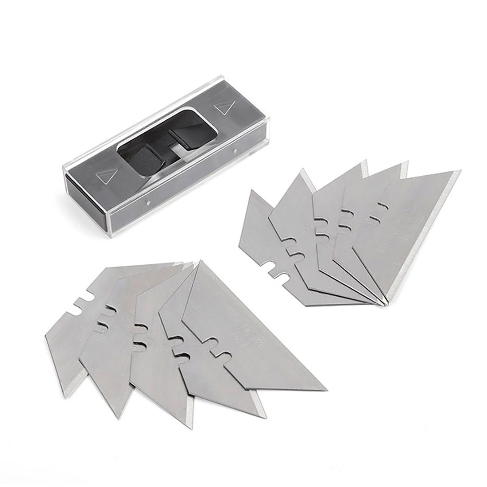 RECAMBIO DE 10 CUCHILLAS CUTTER TRAPEZOIDALES. HOJA UTILITARIA DE USO REGULAR PARA MATERIALES LAMINADOS LIGEROS, PAPEL Y CARTÓN. SE ADAPTA A LA MAYORÍA DE LOS CÚTER UTILITARIOS ESTÁNDAR. HOJA SK5 60 x 25 x 13 mm