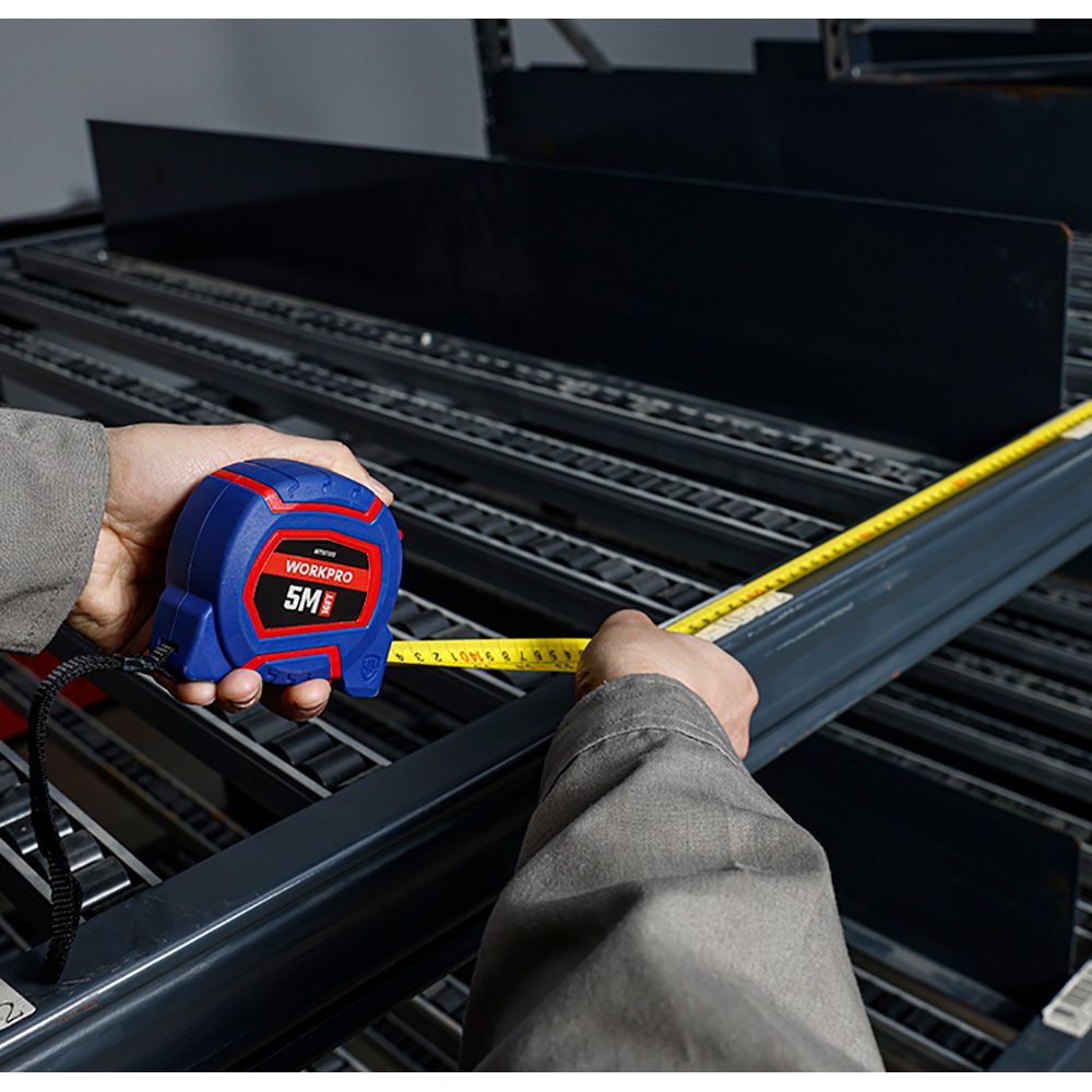 FLEXÓMETRO 5 m x 19 mm. CON HOJA REVESTIDA DE NYLON. ESCALAS MÉTRICAS E IMPERIALES. RESORTE TRATADO TÉRMICAMENTE. REVESTIMIENTO DE GOMA BIMATERIAL, CÓMODO Y DURADERO. CON CLIP PARA CINTURÓN Y CORDÓN, CÓMODO DE LLEVAR. MECANISMO ADICIONAL DE BLOQUEO EN LA PARTE INFERIOR. CARCASA ERGONÓMICA, AZUL Y ROJO