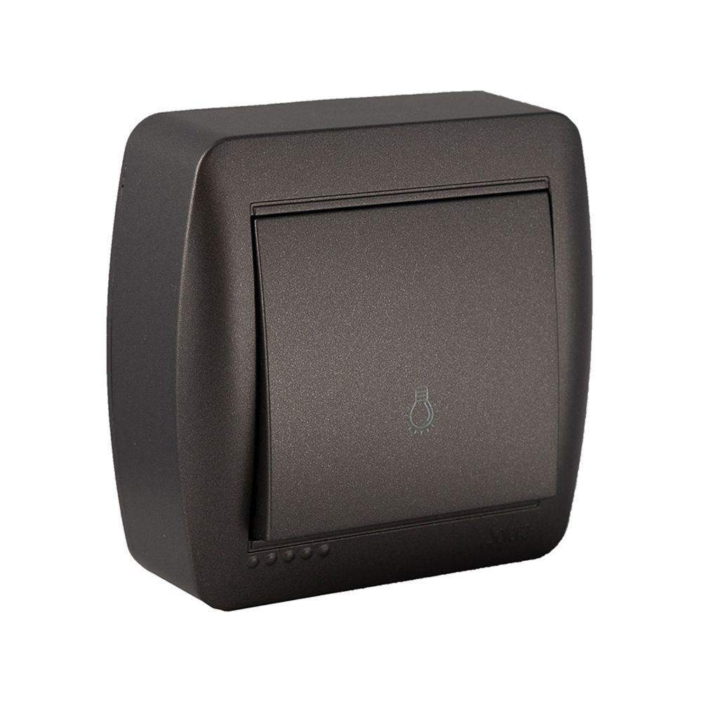 PULSADOR LUZ 10A 250V~. DE SUPERFICIE. SERIE MURAL PULSADOR LUZ 10A 250V~. EMBORNAMIENTO POR TORNILLO. DE SUPERFICIE. COLOR GRAFITO. DIMENSIONES 74x72x28 mm. ENTRADAS PARA MINICANAL DE 10x16, 10x20 Y 16x16 mm.