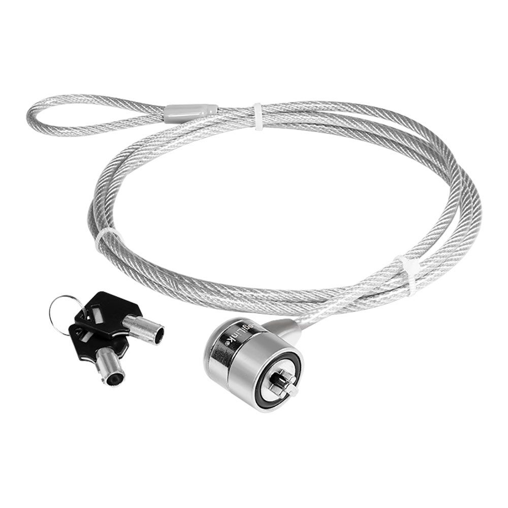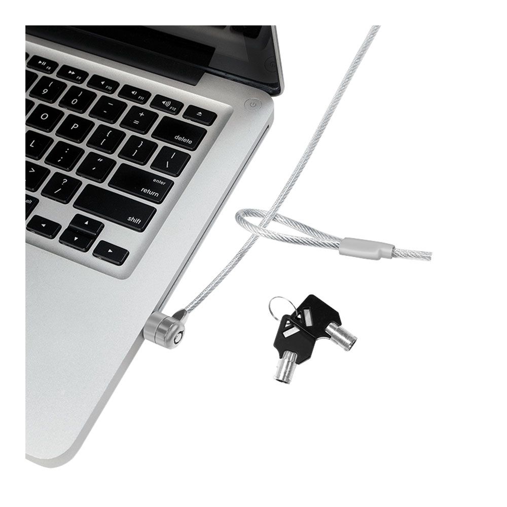 BLOQUEO DE SEGURIDAD PARA PORTÁTIL, CERRADURA CON 2 LLAVES. FIJACIÓN EN EL PORTÁTIL CON BARRA DE SEGURIDAD ESTÁNDAR, CABLE DE ACERO RESISTENTE, CERRADURA DE METAL, CILINDRO DE ACERO TEMPLADO, LONGITUD DEL CABLE: APROX, 1,5 METROS