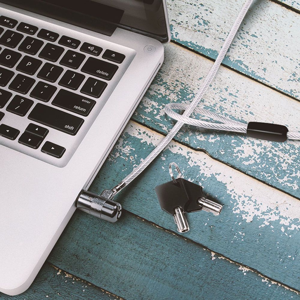 BLOQUEO DE SEGURIDAD PARA PORTÁTIL, CERRADURA CON 2 LLAVES, CERRADURA CON LLAVE CON BARRA EN T DELGADA: Ø15 X 35 MM, LONGITUD DEL CABLE: APROX, 1,5 METROS