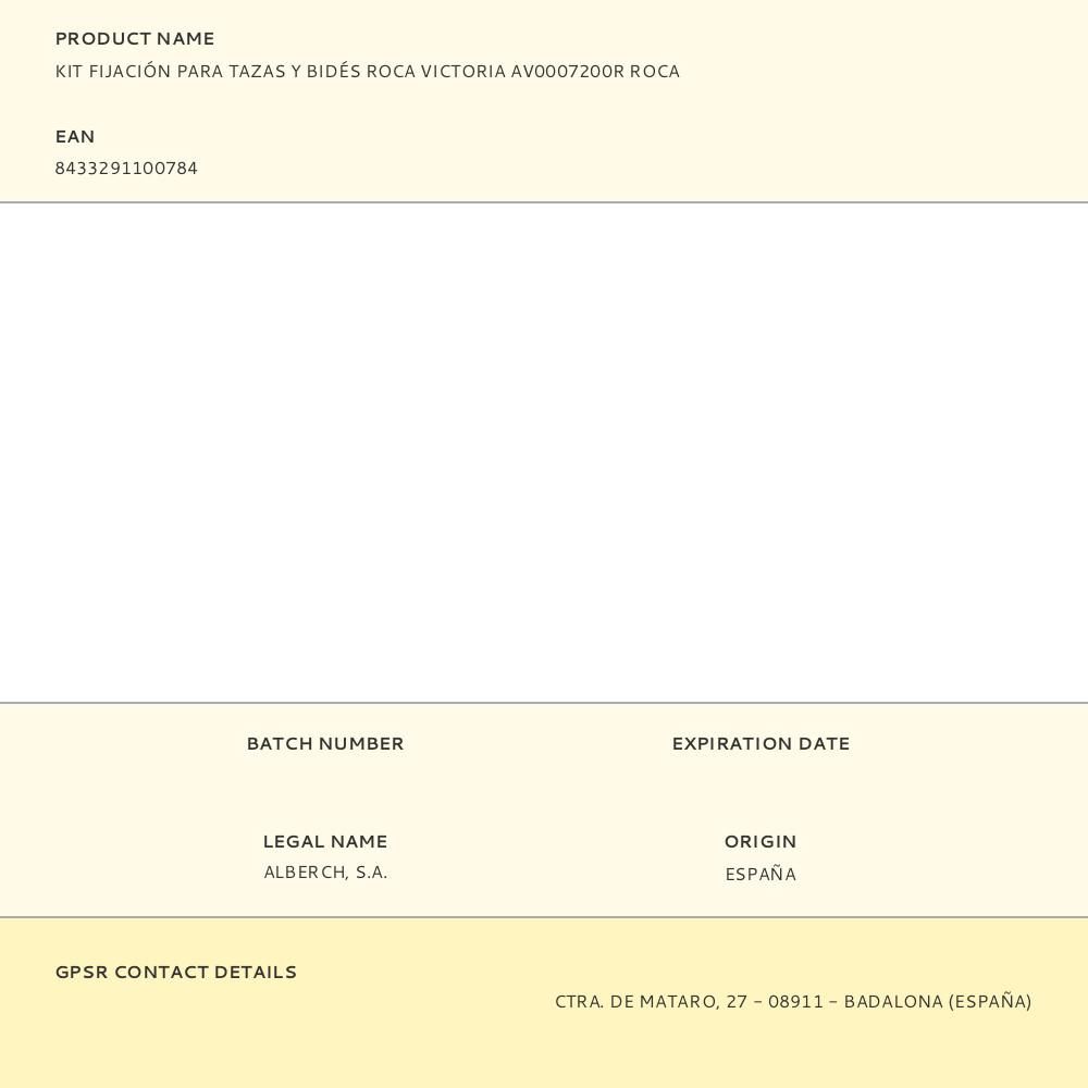 KIT FIJACIÓN PARA TAZAS Y BIDÉS ROCA VICTORIA AV0007200R ROCA