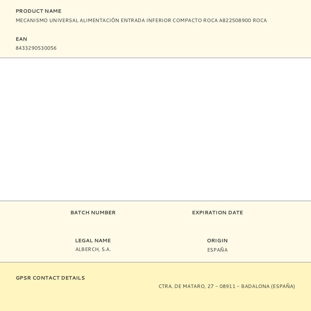 MECANISMO UNIVERSAL ALIMENTACIÓN ENTRADA INFERIOR COMPACTO ROCA A822508900 ROCA