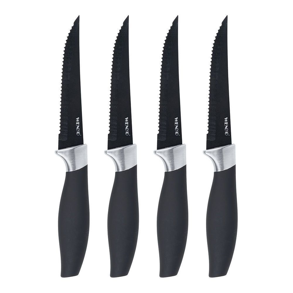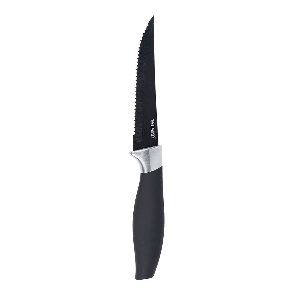 CUCHILLO PARA CARNE CON HOJA DENTADA QUE PERMITE CORTAR SIN ESFUERZO CARNE, PIZZA Y OTROS ALIMENTOS A LA PARRILLA. HOJA MUY AFILADA Y MANGO ERGONÓMICO