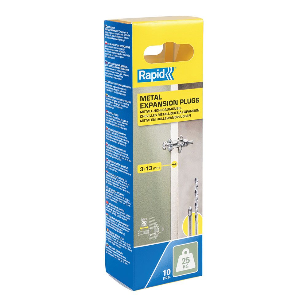 BLISTER 10 UNIDADES TACO DE EXPANSIÓN METÁLICO Ø8X32 TORNILLO M4X40 RESISTENCIA 25 kg. ESPECIAL PARA PLADUR, PAREDES DE YESO Y PAREDES HUECAS. PARA GROSOR DE PARED: 3-13mm