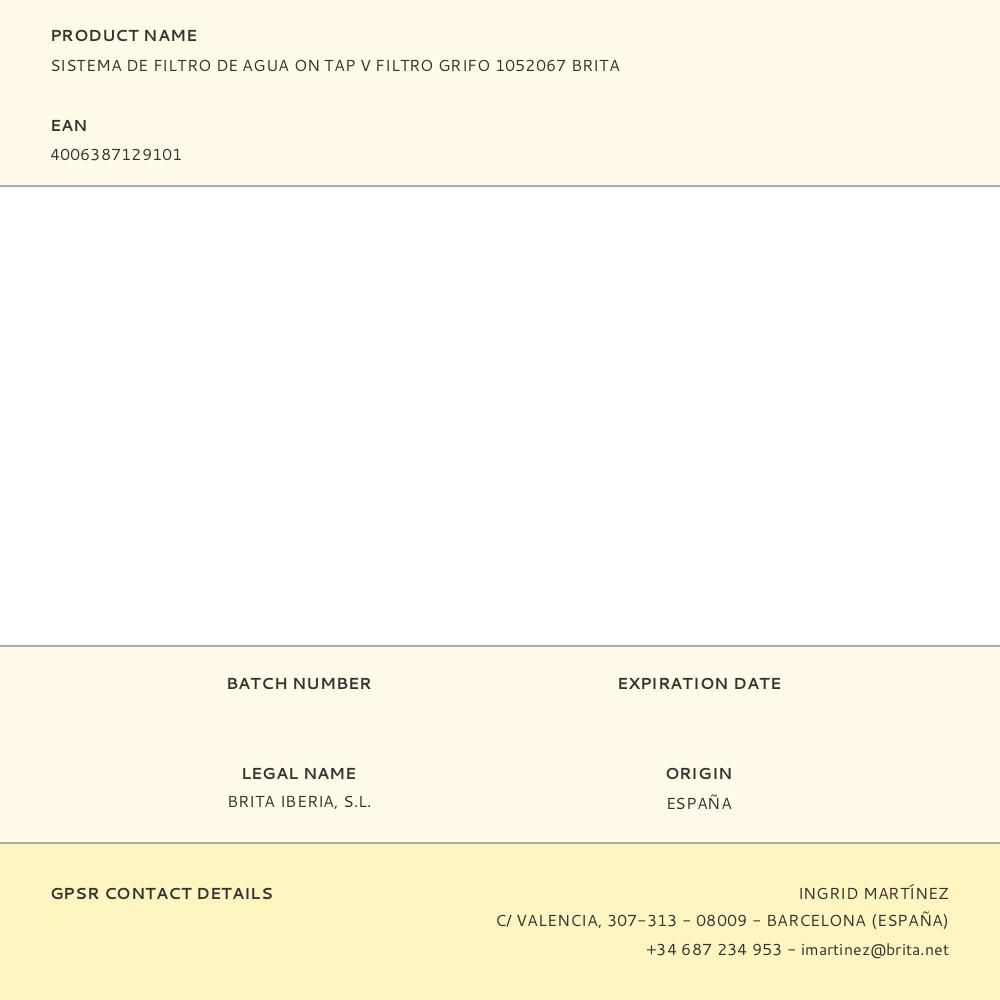 SISTEMA DE FILTRO DE AGUA ON TAP V FILTRO GRIFO 1052067 BRITA