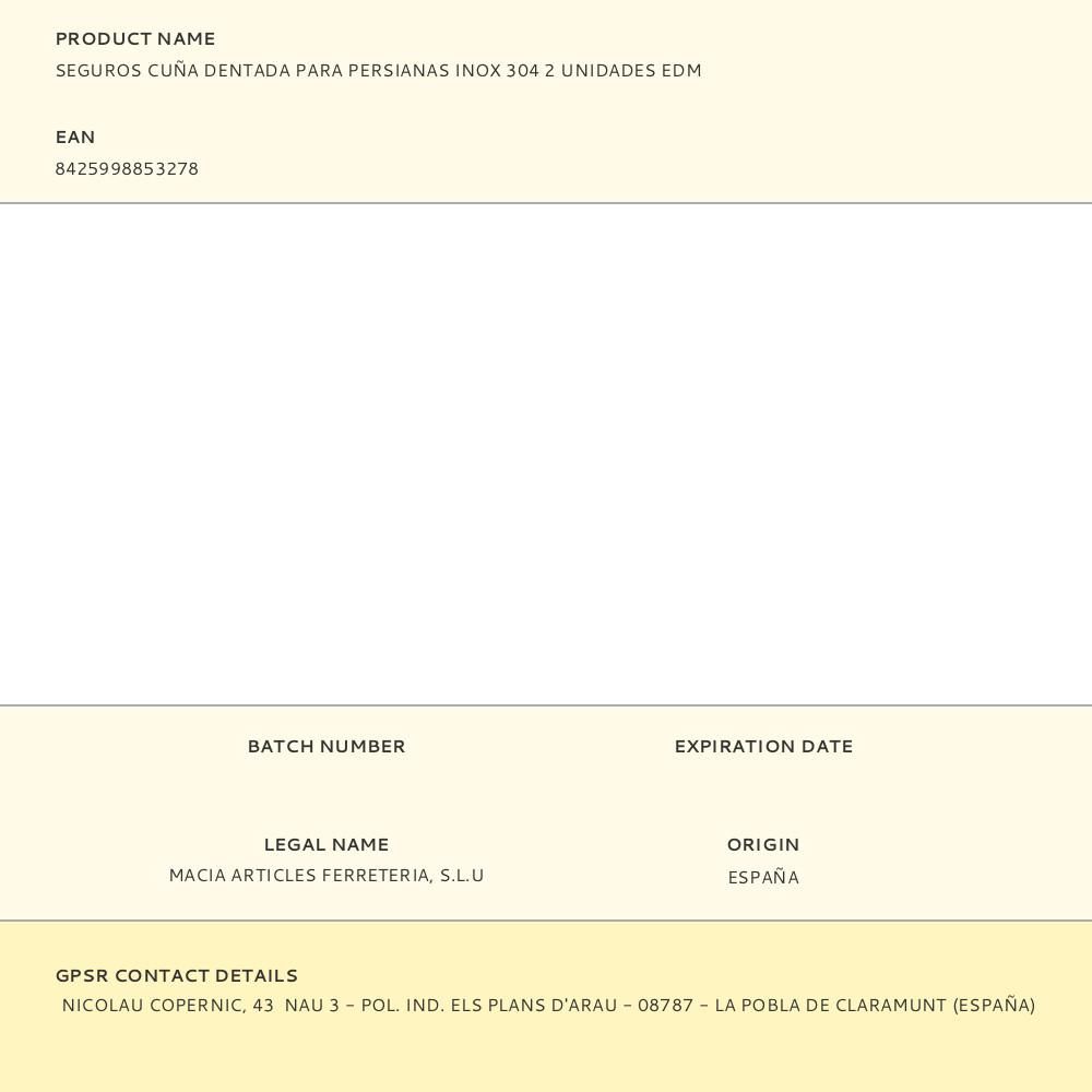 SEGUROS CUÑA DENTADA PARA PERSIANAS INOX 304, 2 uds
