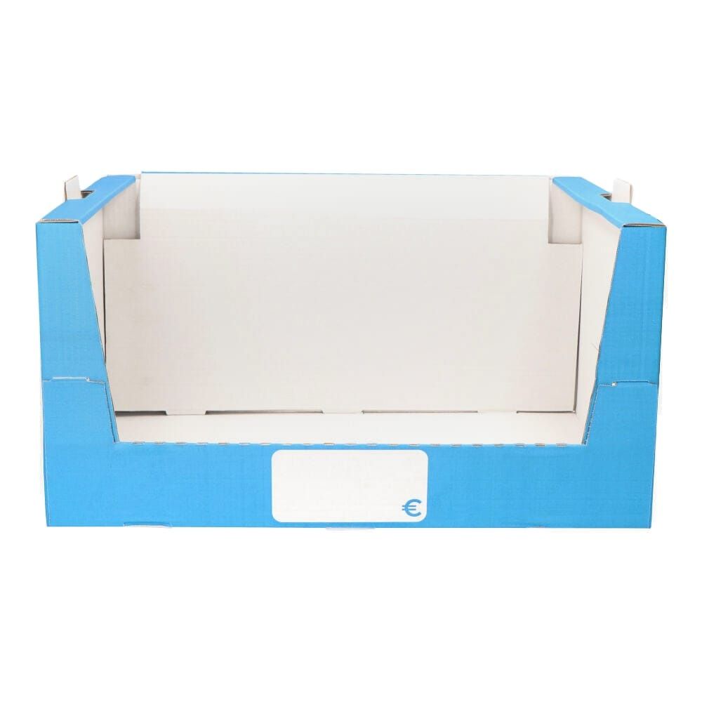 CAJA DE CARTÓN APILABLE ABIERTA TIPO BANDEJA EXPOSITORA. MEDIDA MONTADA 590 x 390 x 300 mm. FÁCIL MONTAJE SIN COLA NI HERRAMIENTAS. PARA CREAR COLUMNAS EXPOSITORAS DE FORMA RÁPIDA Y SENCILLA. IDEAL OUTLETS Y PROMOCIONES TEMPORALES. SE ENTREGA DESPLEGADA, INCLUYE LÁMINA DE ADHESIVOS PARA PONER EL PRECIO EN FRONTAL Y LATERALES.
