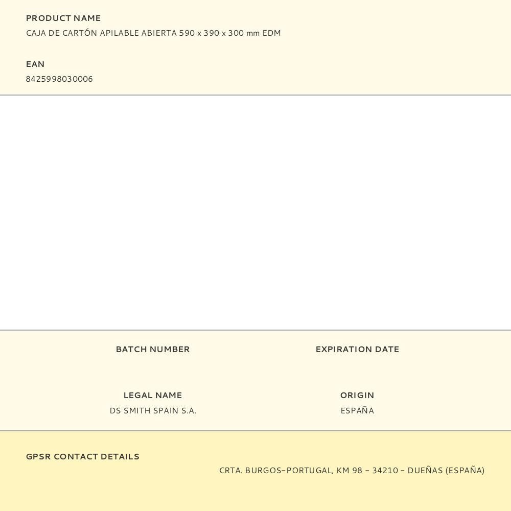 CAJA DE CARTÓN APILABLE ABIERTA 590 x 390 x 300 mm EDM