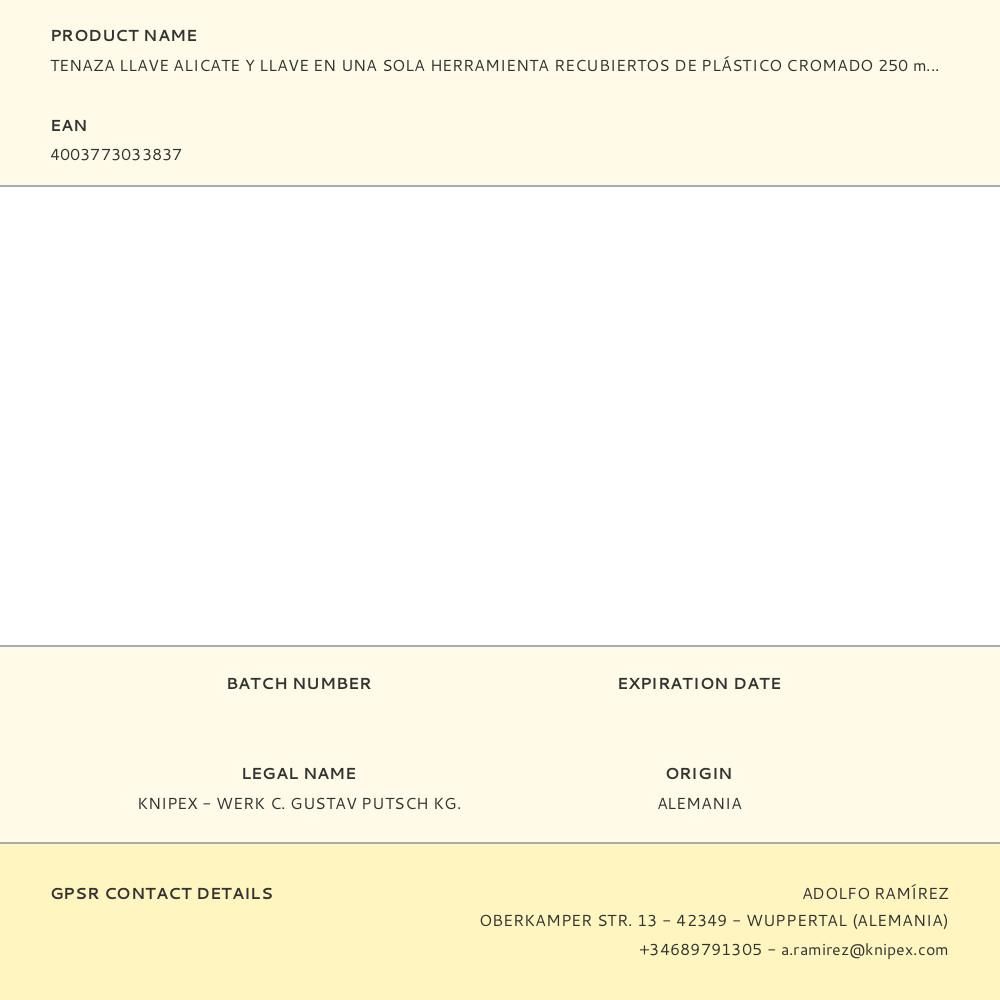 TENAZAS LLAVE ALICATE Y LLAVE EN UNA SOLA HERRAMIENTA RECUBIERTOS DE PLÁSTICO CROMADO 250 mm