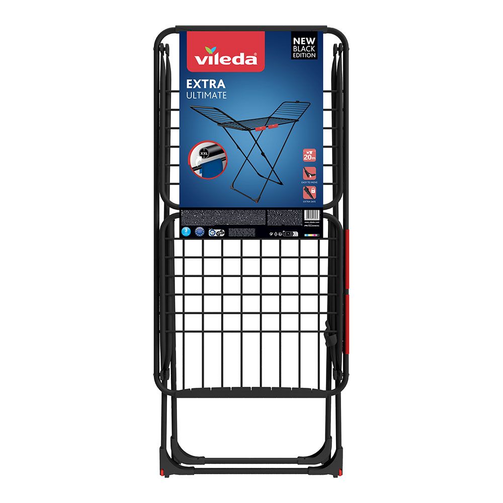 TENDEDERO NEGRO MATE, CON ACCESORIOS Y VARILLAS DE ALUMINIO XXL ANTIARRUGAS. TECNOLOGÍA DOBLE BLOQUEO DE LOS TUBOS, DOBLE COLGADOR DE ACCESORIOS. ESPACIO DE TENDIDO 20 m
