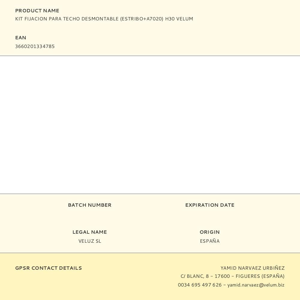KIT FIJACION PARA TECHO DESMONTABLE (ESTRIBO+A7020) H30 VELUM