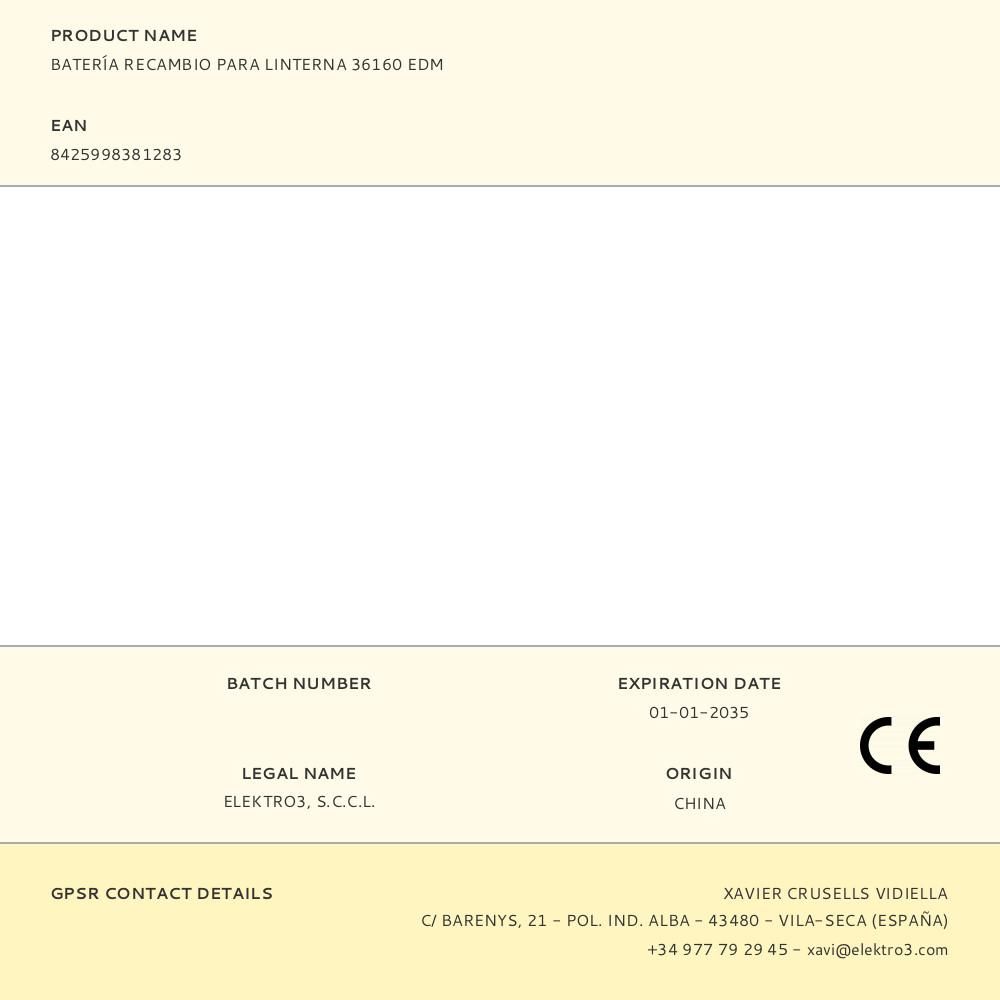 BATERÍA RECAMBIO PARA LINTERNA 36160 EDM