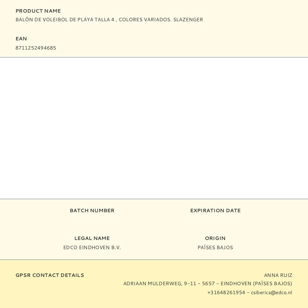 PELOTA DE VOLEIBOL DE PLAYA TALLA 4 , COLORES VARIADOS. SLAZENGER