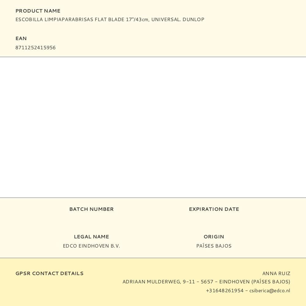 ESCOBILLA LIMPIAPARABRISAS UNIVERSAL FLAT BLADE 17 pulg / 43 cm