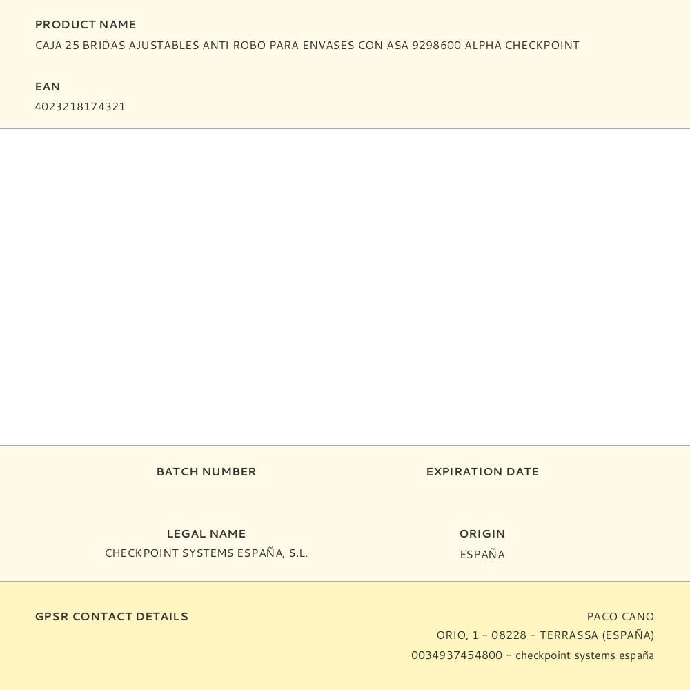 CAJA 25 BRIDAS AJUSTABLES ANTI ROBO PARA ENVASES CON ASA 9298600 ALPHA CHECKPOINT