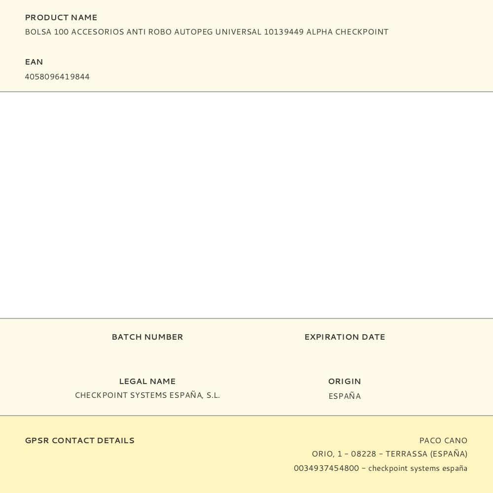 BOLSA 100 ACCESORIOS ANTI ROBO AUTOPEG UNIVERSAL 10139449 ALPHA CHECKPOINT