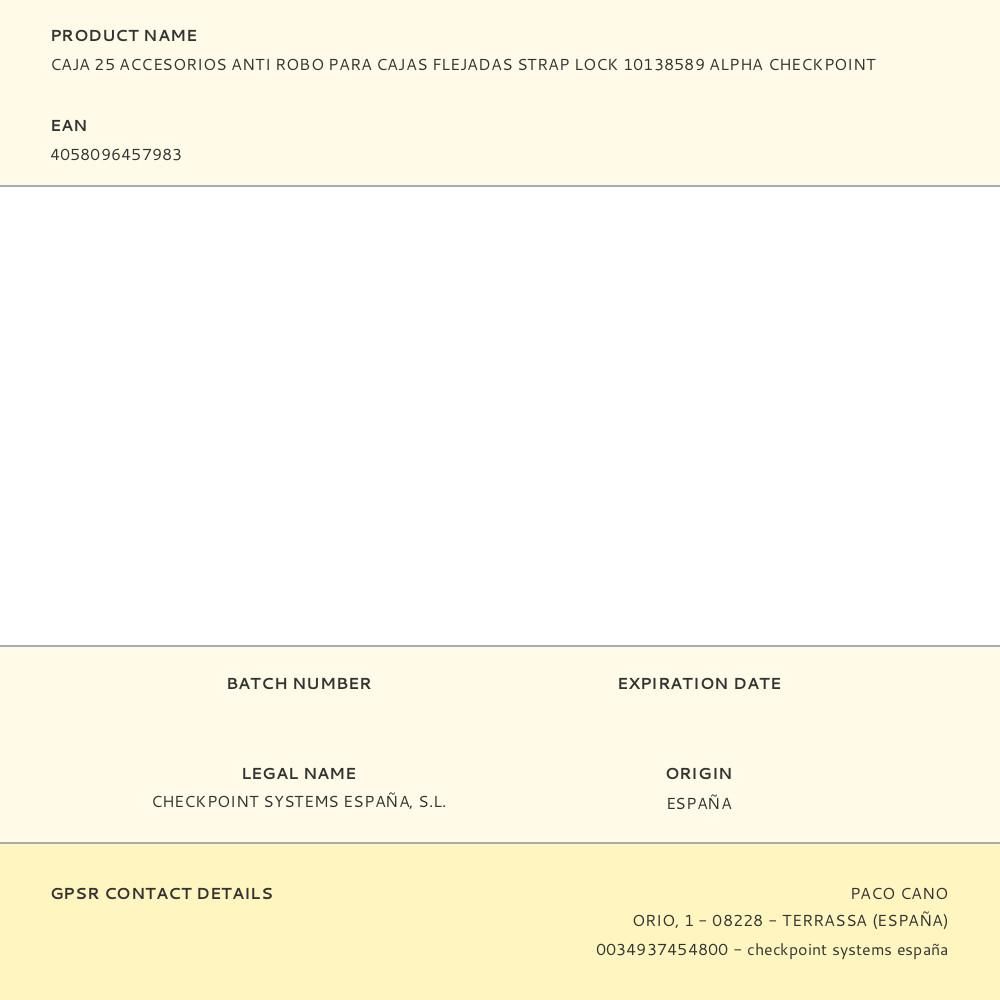 CAJA 25 ACCESORIOS ANTI ROBO PARA CAJAS FLEJADAS STRAP LOCK 10138589 ALPHA CHECKPOINT