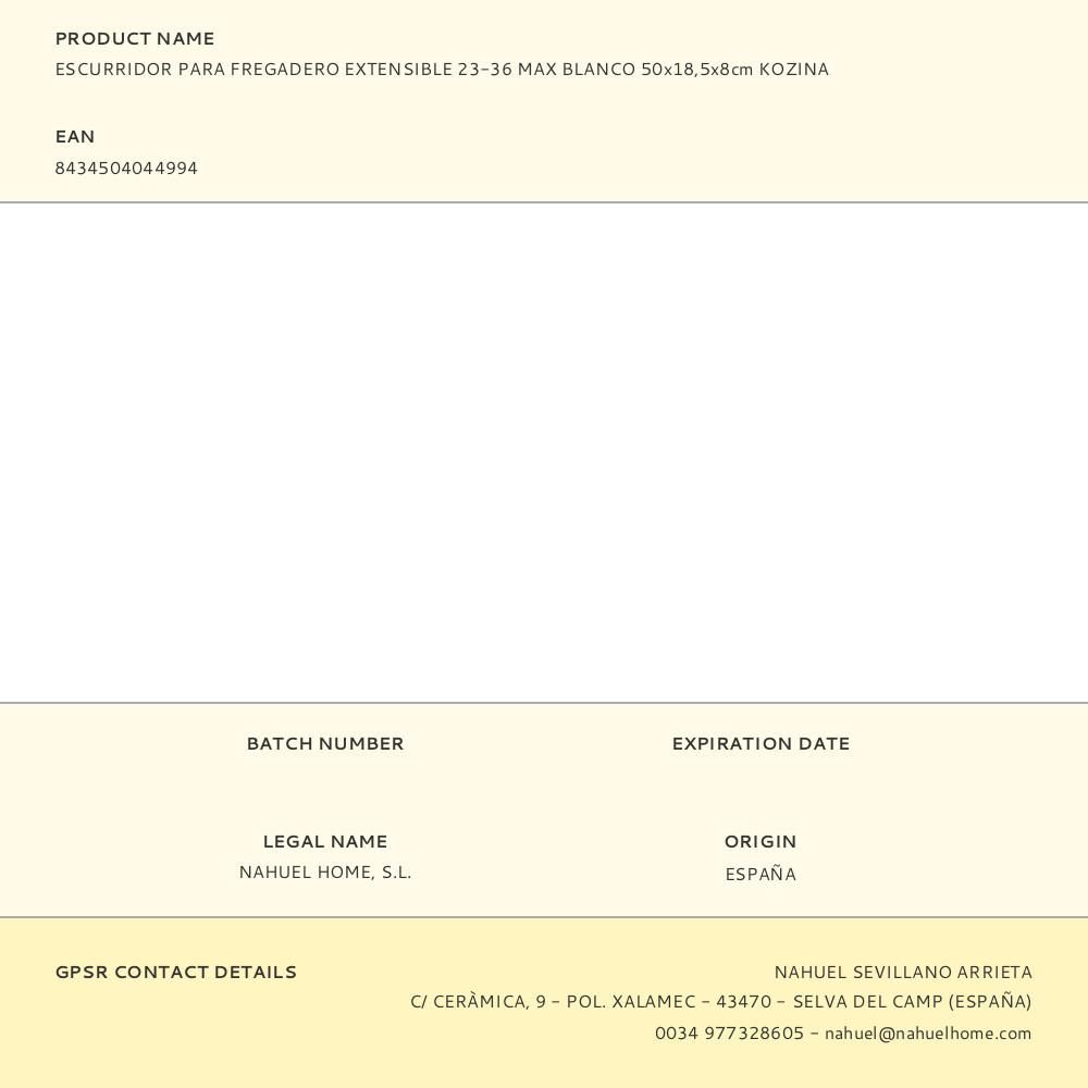 ESCURRIDOR PARA FREGADERO EXTENSIBLE 23-36 cm BLANCO 50 x 18,5 x 8 cm