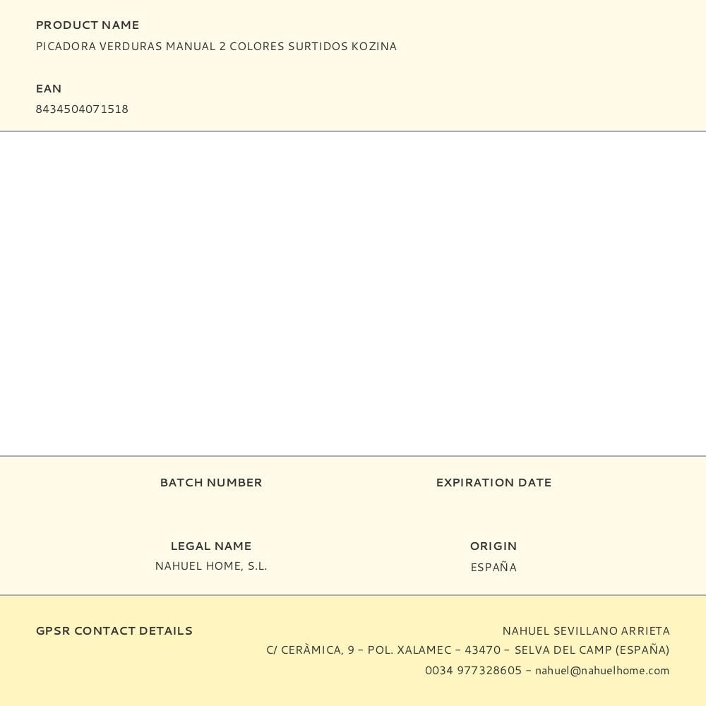 PICADORA VERDURAS MANUAL 2 COLORES SURTIDOS