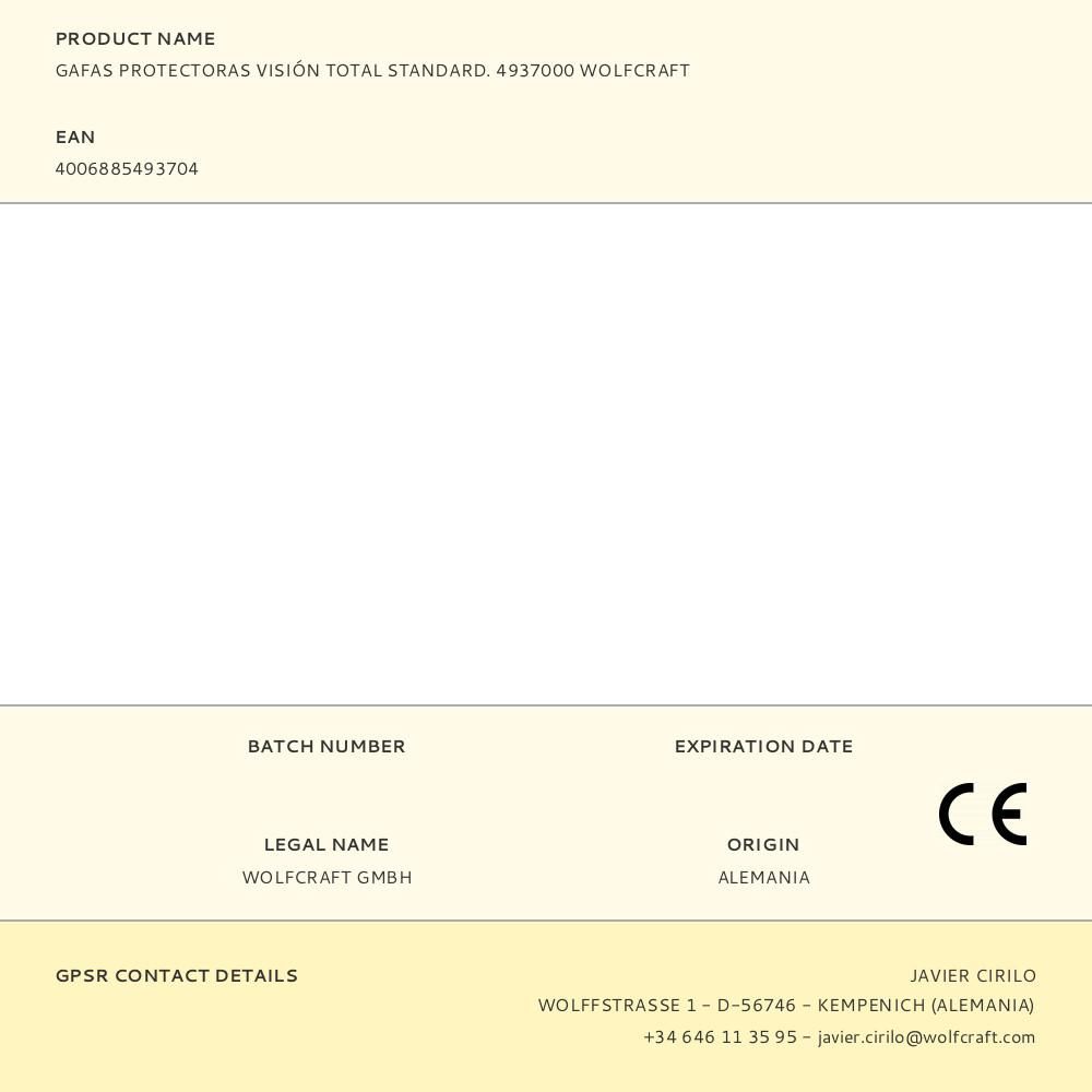 GAFAS PROTECTORAS VISIÓN TOTAL STANDARD. 4937000 WOLFCRAFT