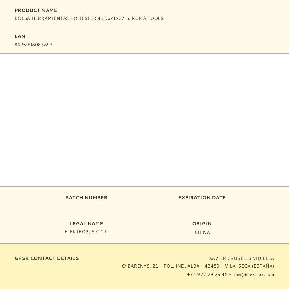BOLSA DE HERRAMIENTAS POLIÉSTER 41,5 x 21 x 27 cm