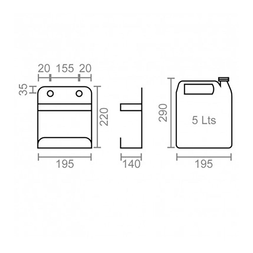 SOPORTE CON GARRAFA DE 5 LITROS, PARA AIRE ACONDICIONADO.MEDIDA DEL SOPORTE: 19,5x14x22,5cm, MEDIDA CON GARRAFA: 19,5x14x29cm, MATERIAL DE ACERO, ACABADO BEIGE. MICEL