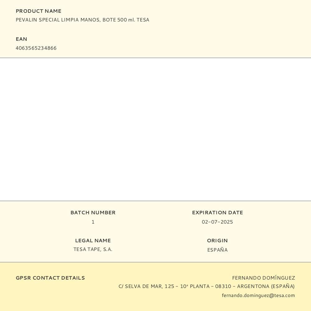 PEVALIN SPECIAL LIMPIA MANOS, BOTE 500 ml. TESA