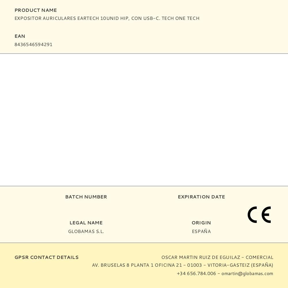 EXPOSITOR AURICULARES EARTECH HIP CON USB-C, 10 uds