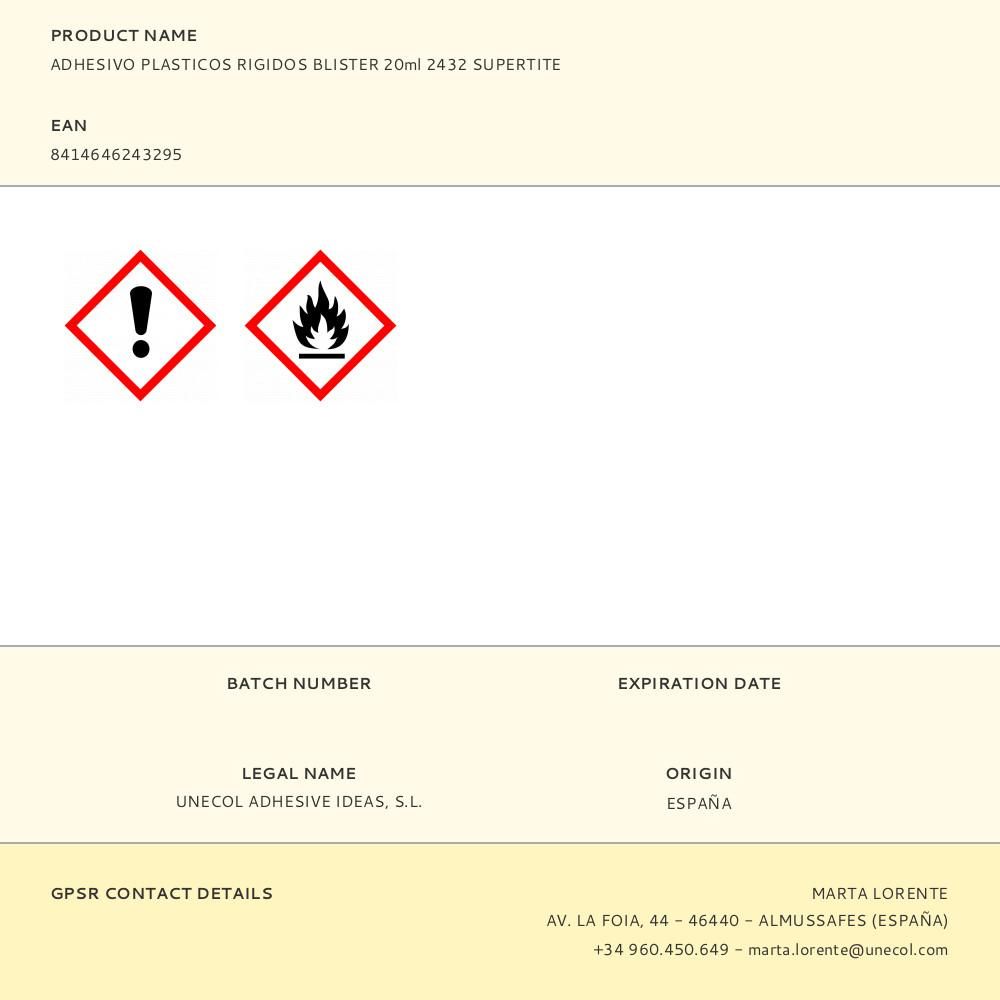 ADHESIVO PLASTICOS RIGIDOS BLISTER 20ml 2432 - ADHESIVO SOLDADOR PARA LA UNIÓN DE PLÁSTICOS DUROS O RÍGIDOS COMO PVC, POLIÉSTER, METACRILATO.TIENE CAPACIDAD DE RELLENO. SUPERTITE