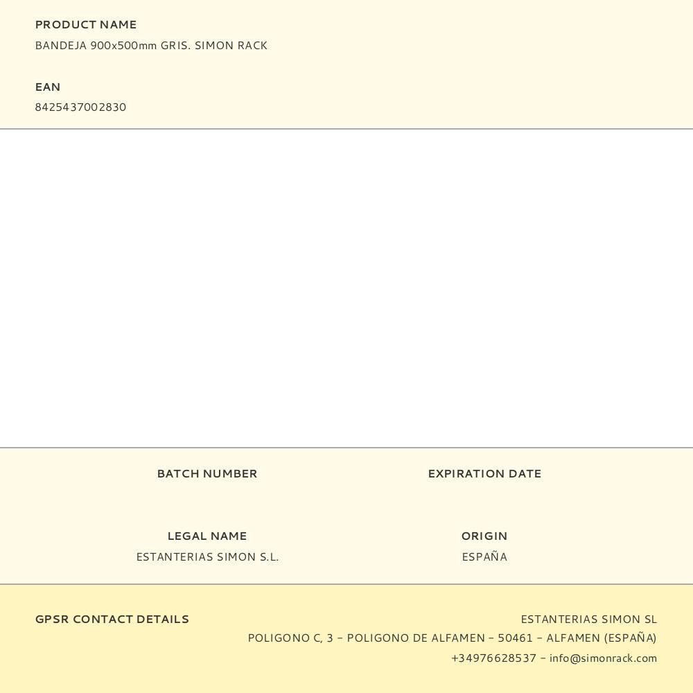 BANDEJA 900x500mm GRIS. SIMON RACK