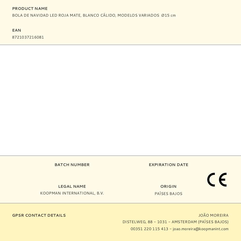 BOLA DE NAVIDAD LED ROJA MATE, BLANCO CÁLIDO, MODELOS VARIADOS Ø15 cm