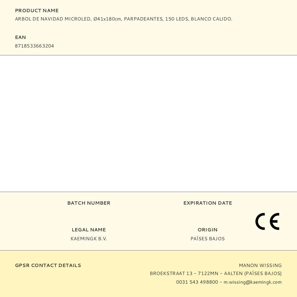 ARBOL DE NAVIDAD MICROLED, Ø41x180cm, PARPADEANTES, 150 LEDS, BLANCO CALIDO.