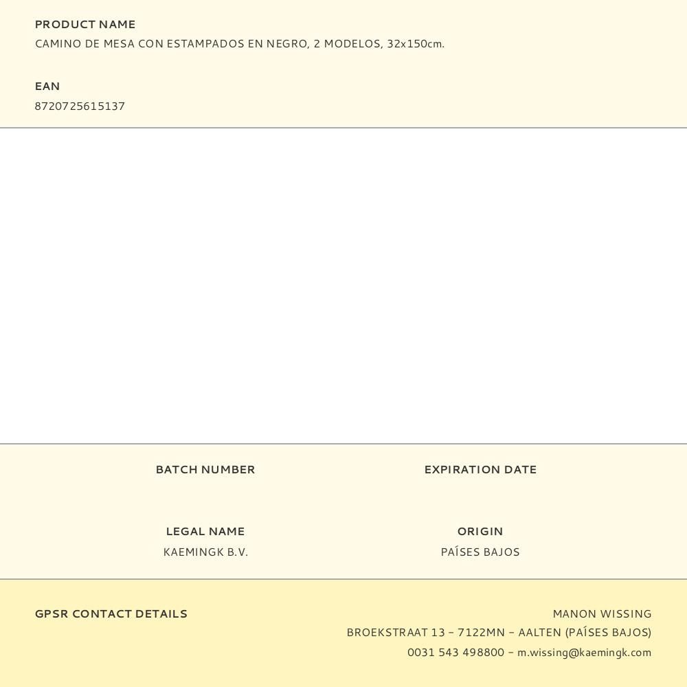 CAMINO DE MESA CON ESTAMPADOS EN NEGRO, 2 MODELOS, 32 x 150 cm