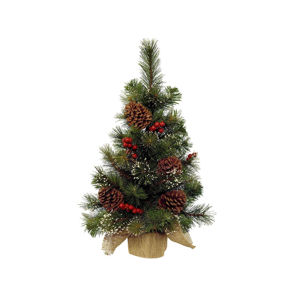 MINI ABETO NEVADO CON BAYAS Y PIÑAS, PVC, 30x45cm.