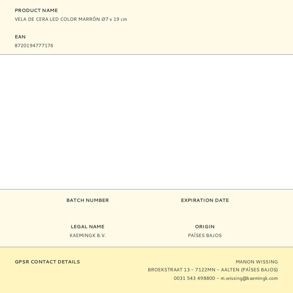 VELA DE CERA LED COLOR MARRÓN Ø7 x 19 cm